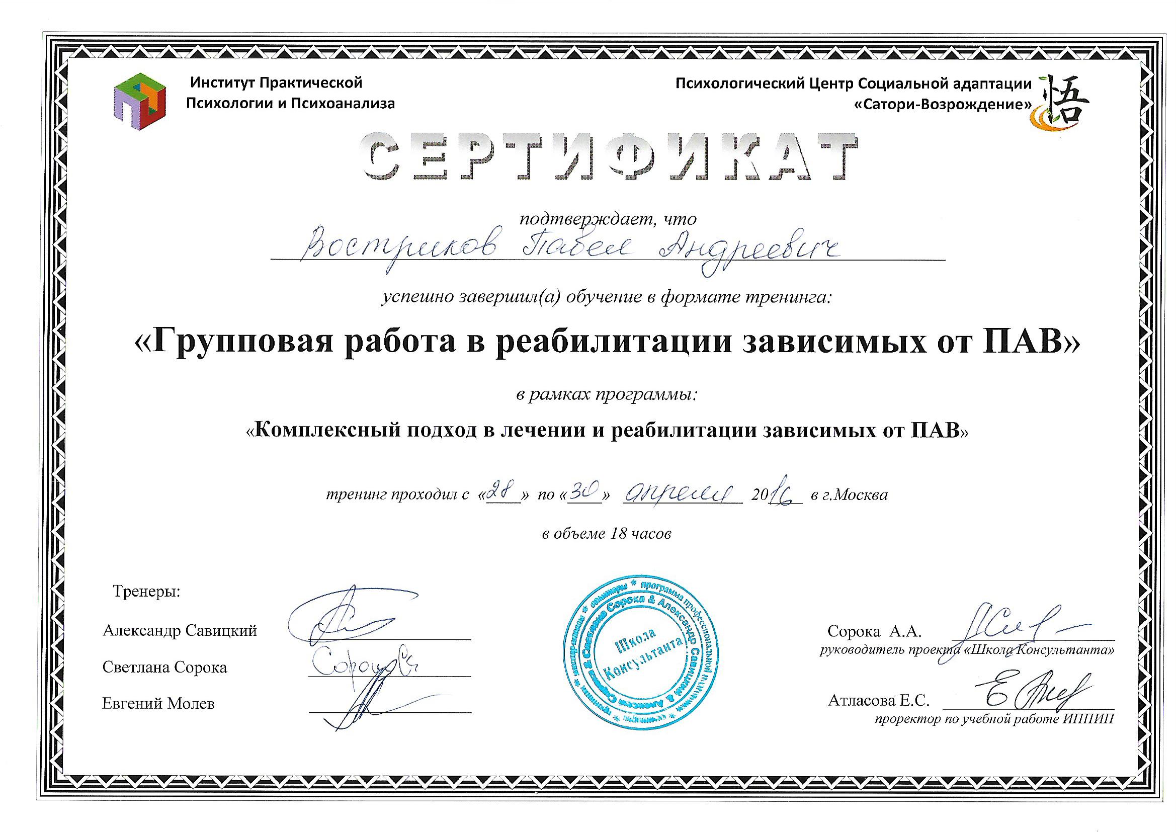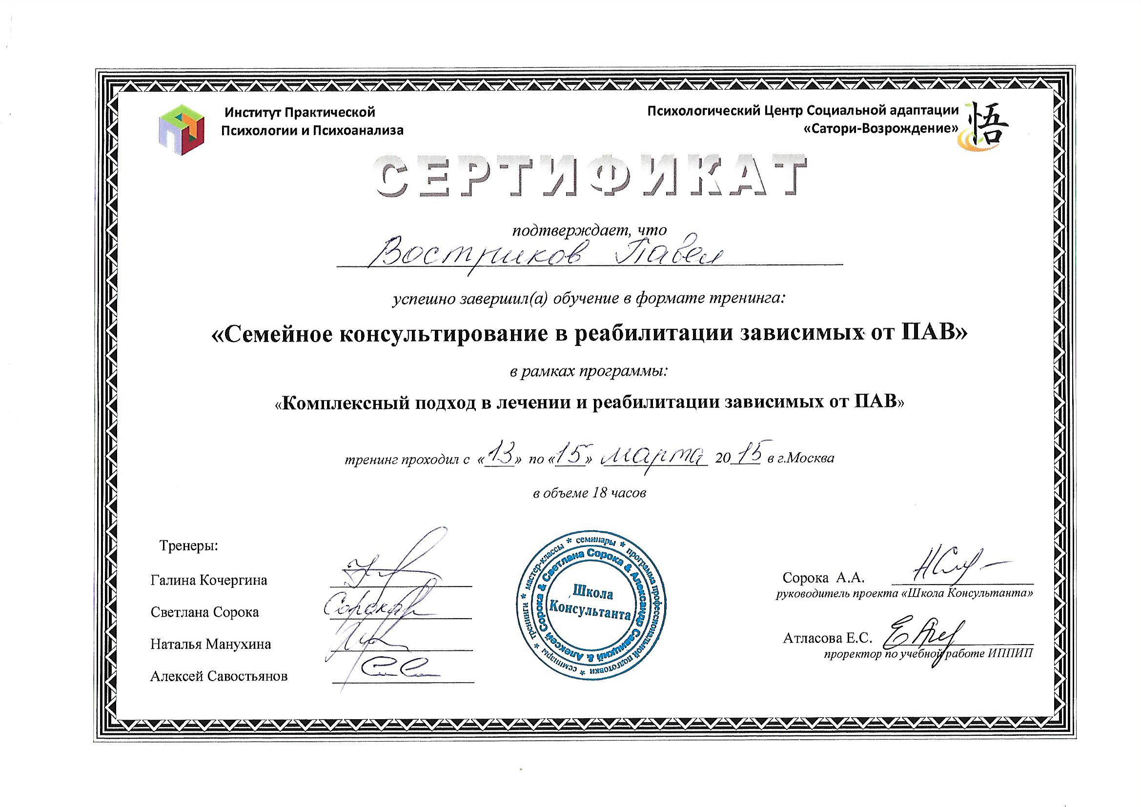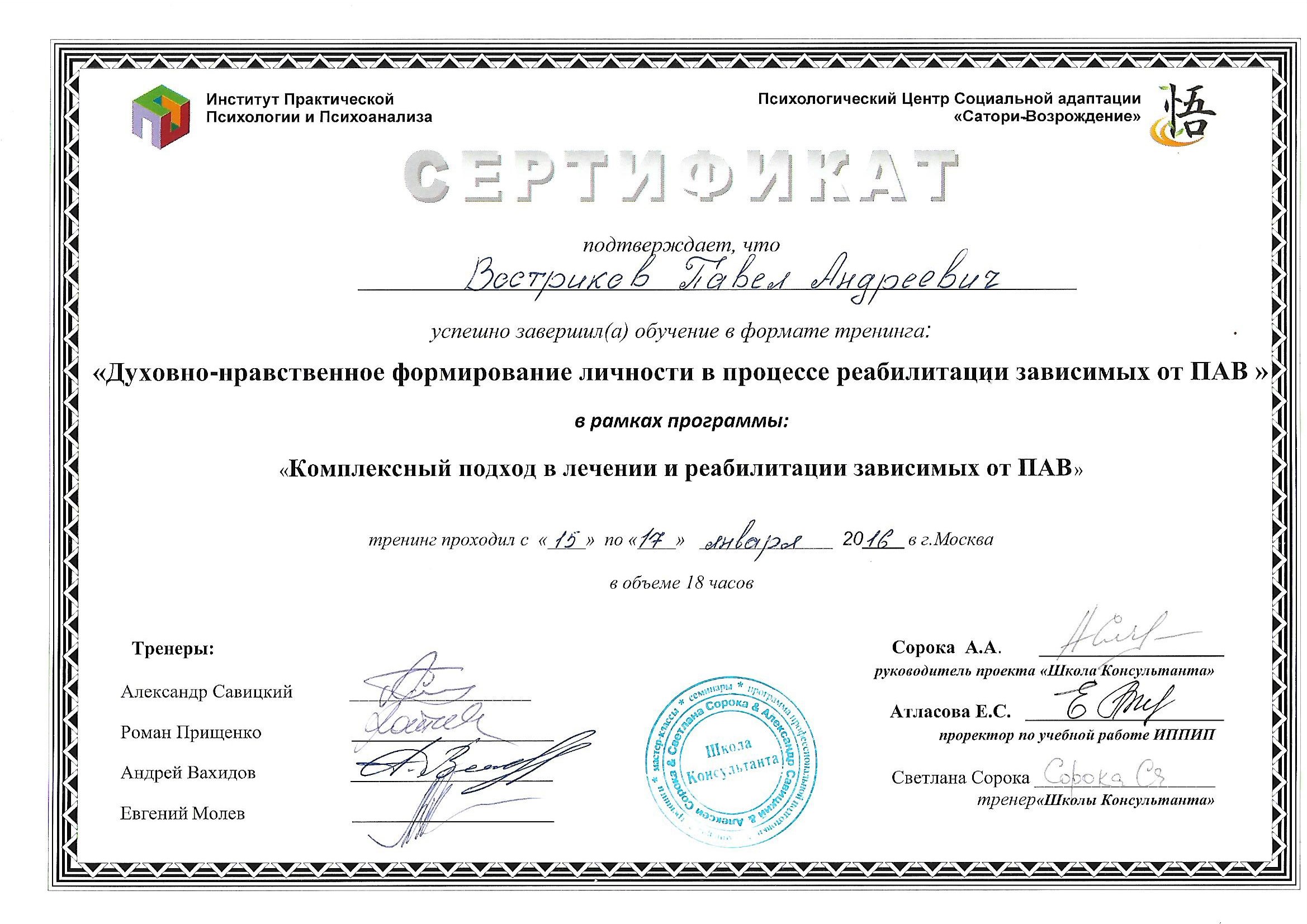| Индивидуальный | Разрабатывается под конкретного клиента, исходя из его особенностей и потребностей для получения максимального результата. Индивидуальные консультации на протяжении всего срока реабилитации и социальной адаптации клиента. Включена индивидуальная работа специалистов с родственниками, семейные сессии. | 129 990 руб. |