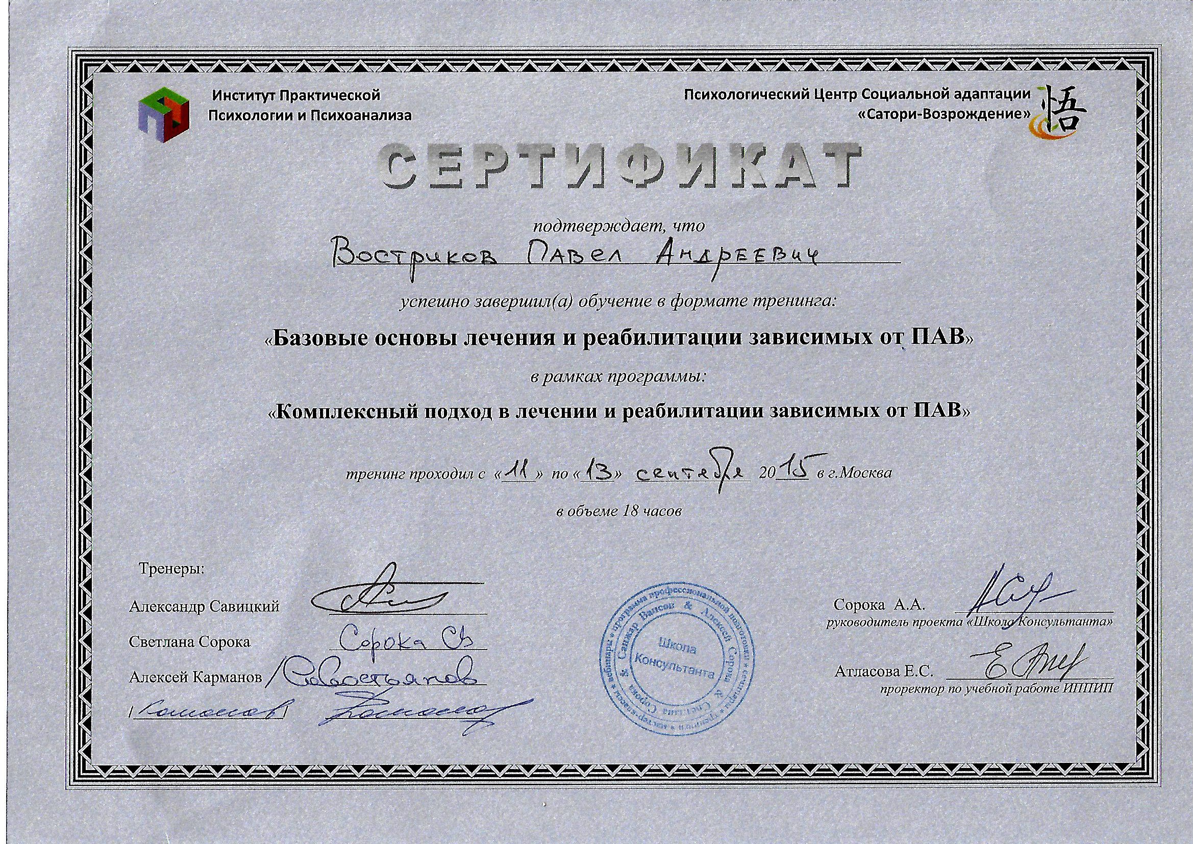 Курсы повышения квалификации:В нашем центре имеется четыре варианта реабилитации.