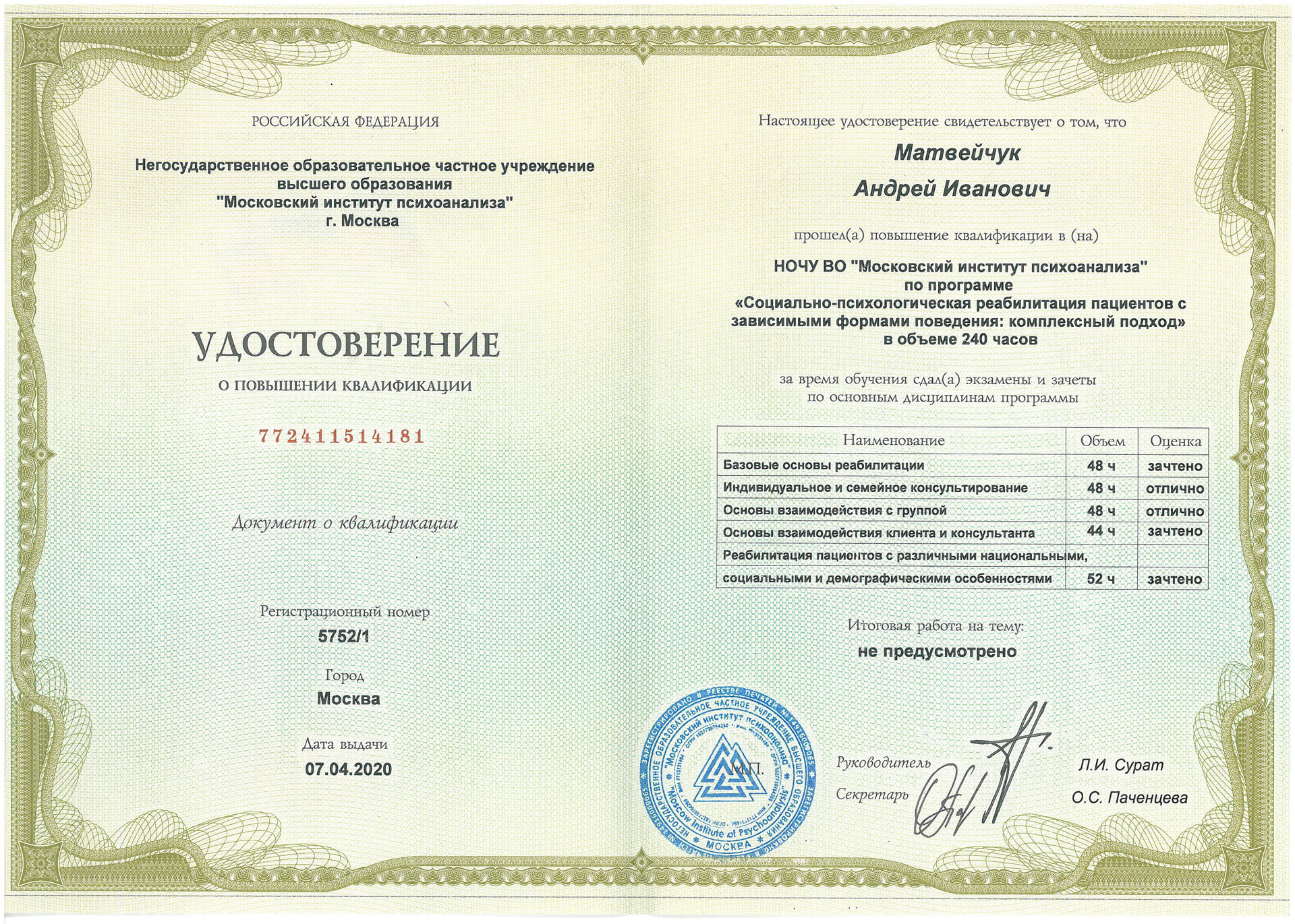Опыт работы:В нашем центре имеется четыре варианта реабилитации.